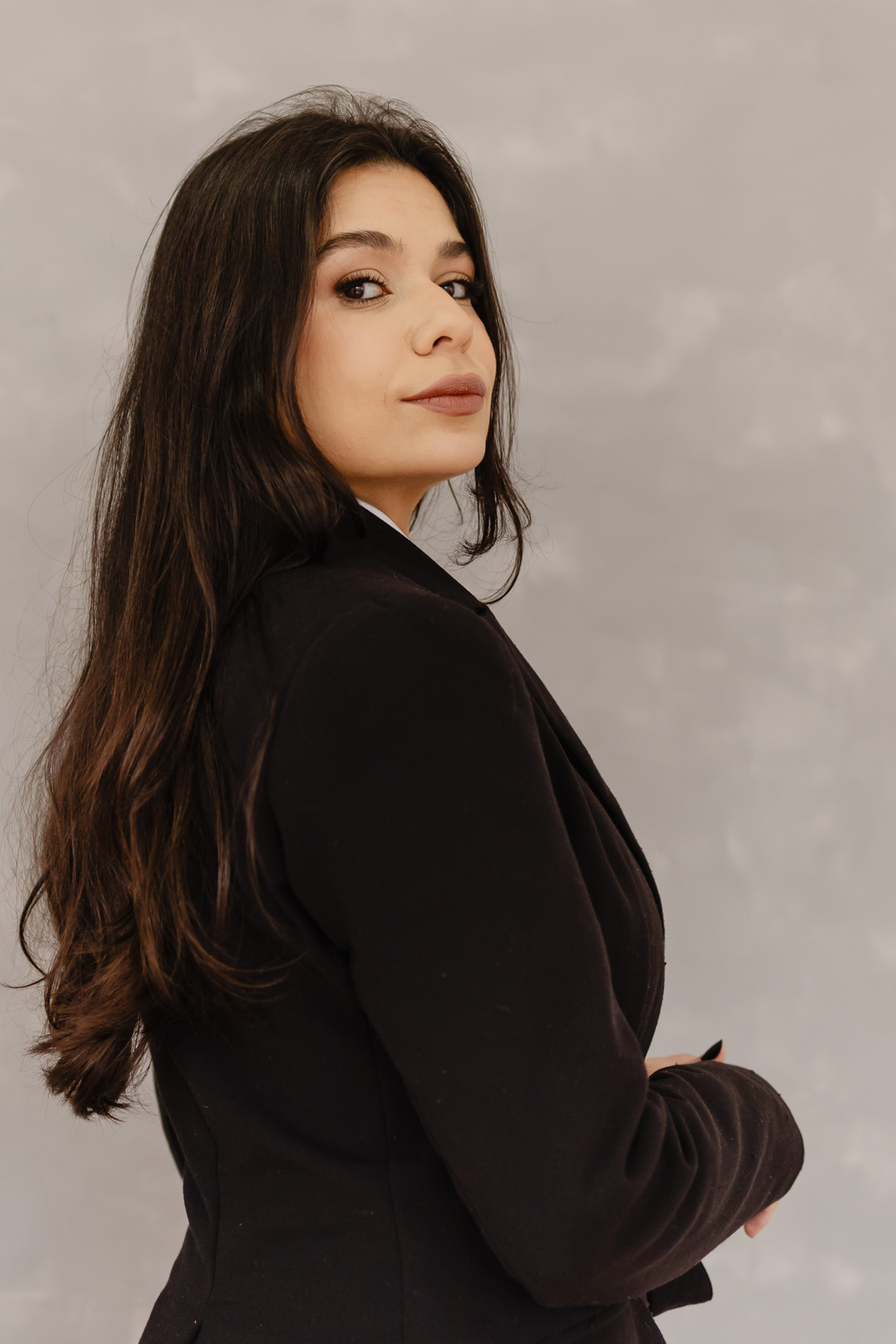 A mensagem do ensaio era mostrar o profissionalismo da Aurea, com toques de acolhimento, afinal atua na área de defesa.